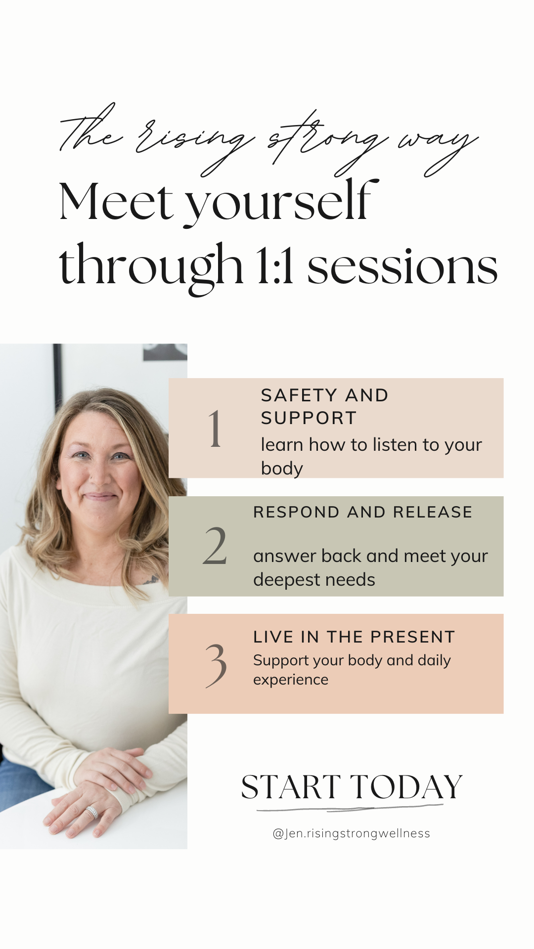 Jennifer Bullen is the founder of Rising Strong Wellness. Jen, a somatic healing coach, is passionate about helping individuals overcome trauma and achieve wholeness through body-focused techniques. She strongly believes in the body's capacity for healing and the importance of listening to the stories it holds. Driven by a deep-rooted belief in the body's ability to heal, she reveres the stories woven within each individual and listens to their whispers with utmost care. For Jen, music and movement is more than melody—it's a balm for the human condition. Her influences are vast, drawn from the wellspring of love, grief, courage, bravery, compassion, and the resounding laughter that echoes through. These elements converge to create a somatic symphony in the body that, when accessed through music, movement, and vocal release, support the freeing up of energies that leave us feeling stuck. In Jen’s classes, authenticity is the currency, vulnerability is the strength. Her teaching transcends the physical, delving into the soul's depths. The essence of her movement experiences is a grounded exploration of self, guided by compassion and elevated by the transformative power of music. Somatic healing, Jennifer's preferred modality, emphasizes feeling through issues rather than merely talking about them. Jen uses various techniques, including trauma-sensitive yoga, dance, and art, and encourages connection with nature. Her holistic approach to health counseling encompasses the whole being, examining stress levels, digestion, sleep patterns, hormones, and life experiences. This all-encompassing method aims to kindle the healing of the mind and body, spark vitality, and nurture nervous system health. Jennifer also practices Ayurveda, an ancient Indian system of medicine that promotes a holistic, nature-connected lifestyle. Her unique expertise lies in supporting those navigating the path of trauma, body image issues, disordered eating, and movement patterns.